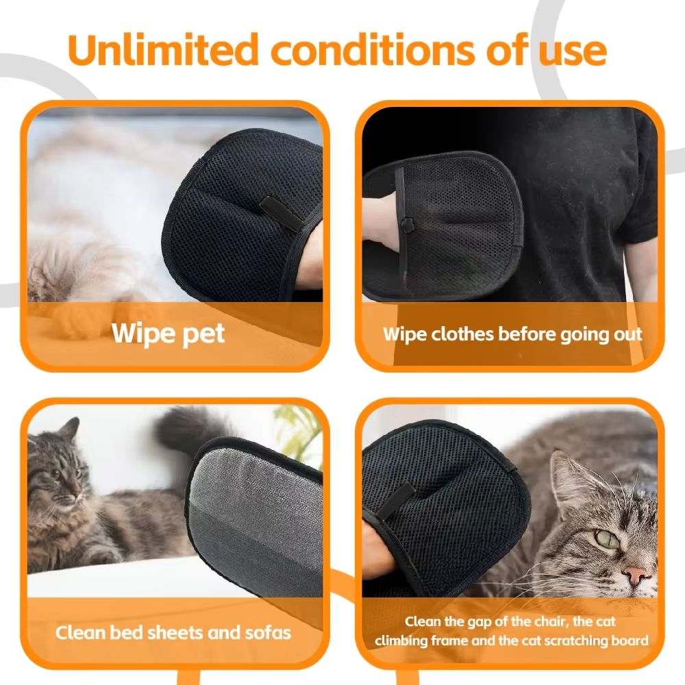 ●Amplia gama de usos: este guante para depilación de mascotas es adecuado para cualquier superficie de tela.Por ejemplo: ropa, sofás, alfombras.Este guante puede limpiar fácilmente el pelo de la superficie de los objetos.Es la opción ideal para todos los que tienen mascotas.